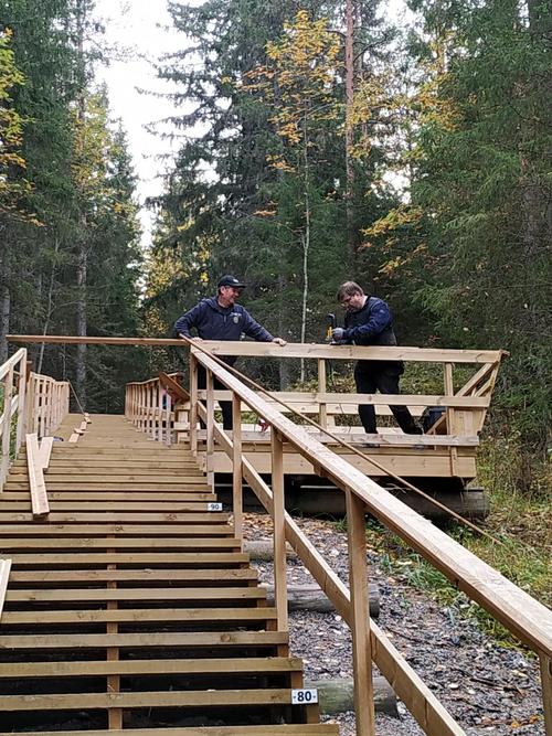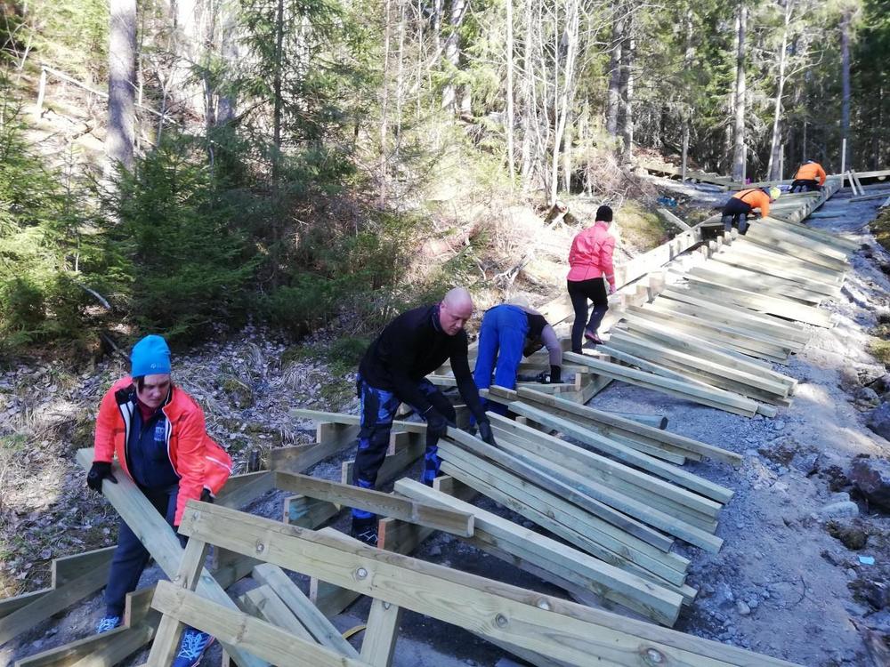 Kaiteet ja penkit rakennettiin 28.4. – 4.5., jonka jälkeen portaat olivat käyttökunnossa.