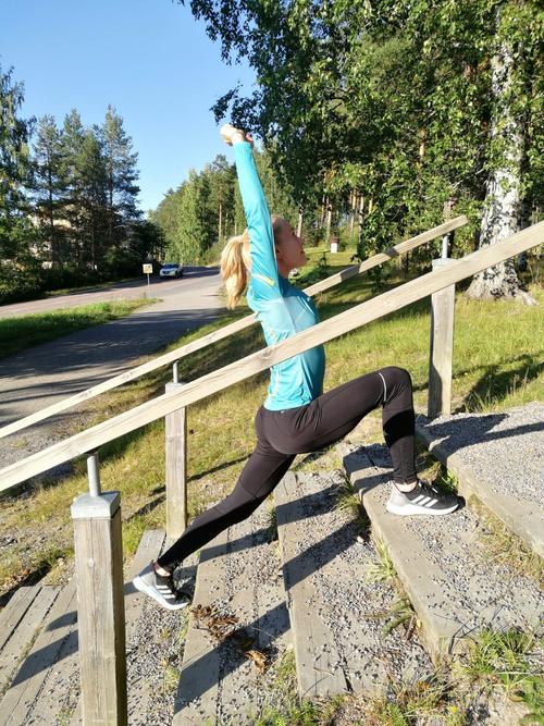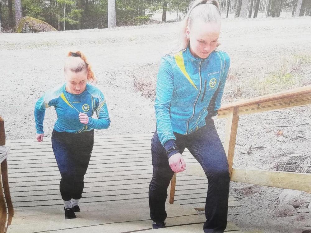 Vireen nuoret aktiivit Neea Flyktman ja Tessa Moisio esittelivat tapahtumassa porrastreeniliikkeitä.