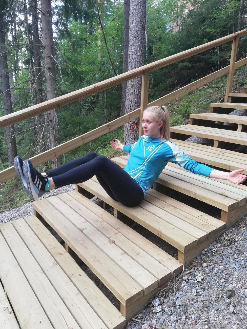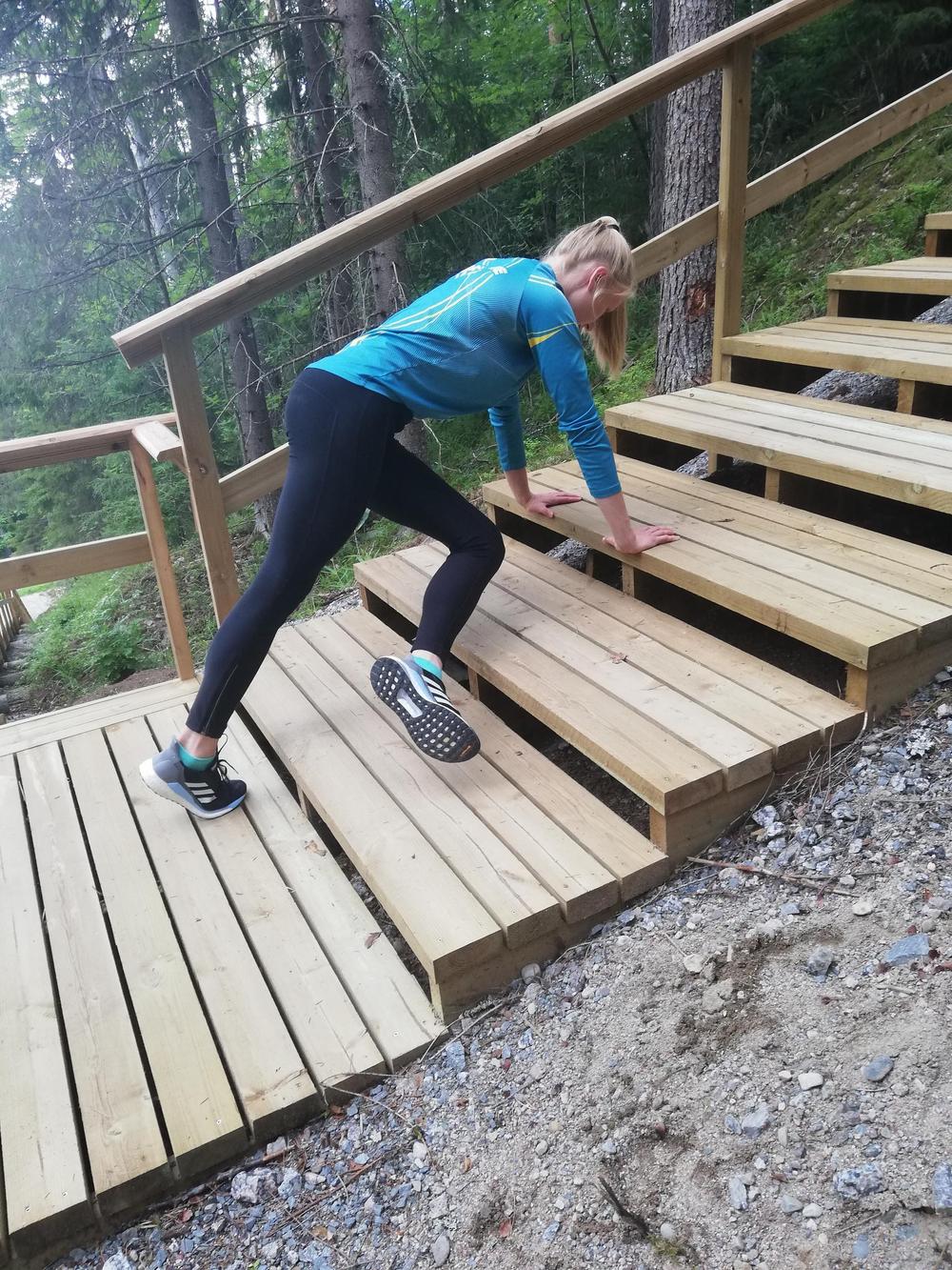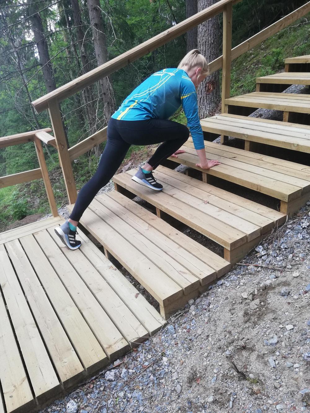 Portaissa voit tehdä kätevästi myös erilaisia lihaskuntoa parantavia liikkeitä: