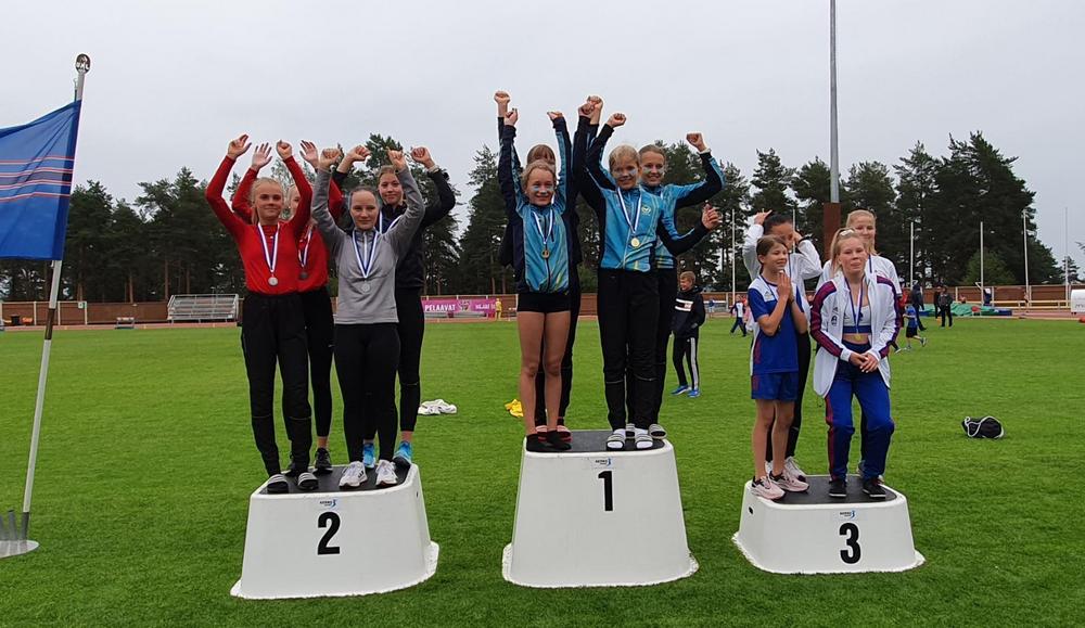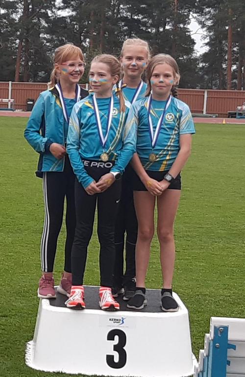 11-vuotiaiden joukkueessa juoksivat Iida Taini, Hilla Ruokostenpohja, Julia Talvinen ja Emilia Salonen. Tytöt pinkoivat 4x50m hienosti pronssille 13 joukkueen joukosta. Pitkässä viestissä matkana oli 600m ja tytöt taistelivat sateisessa illassa itsensä toistamiseen pronssille!
