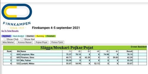 Simo Piirainen kiskaisi moukarissa kakkossijan 17-vuotiaiden nuorten Suomi-Ruotsi-ottelussa Tukholman stadionilla. Sunnuntaiaamuna käydyn kisan voitti Someron Esan Max Lampinen tuloksella 78,19. Simon paras heitto kantoi lukemiin 62,39. Ruotsin edustajista Fabian Mix heitti tuloksen 55,50 ja Niklas Lundahl 55,07. Näin Suomen edustajat ottivat kaksoisvoiton ruotsalaisista, pistein 8 - 3.
