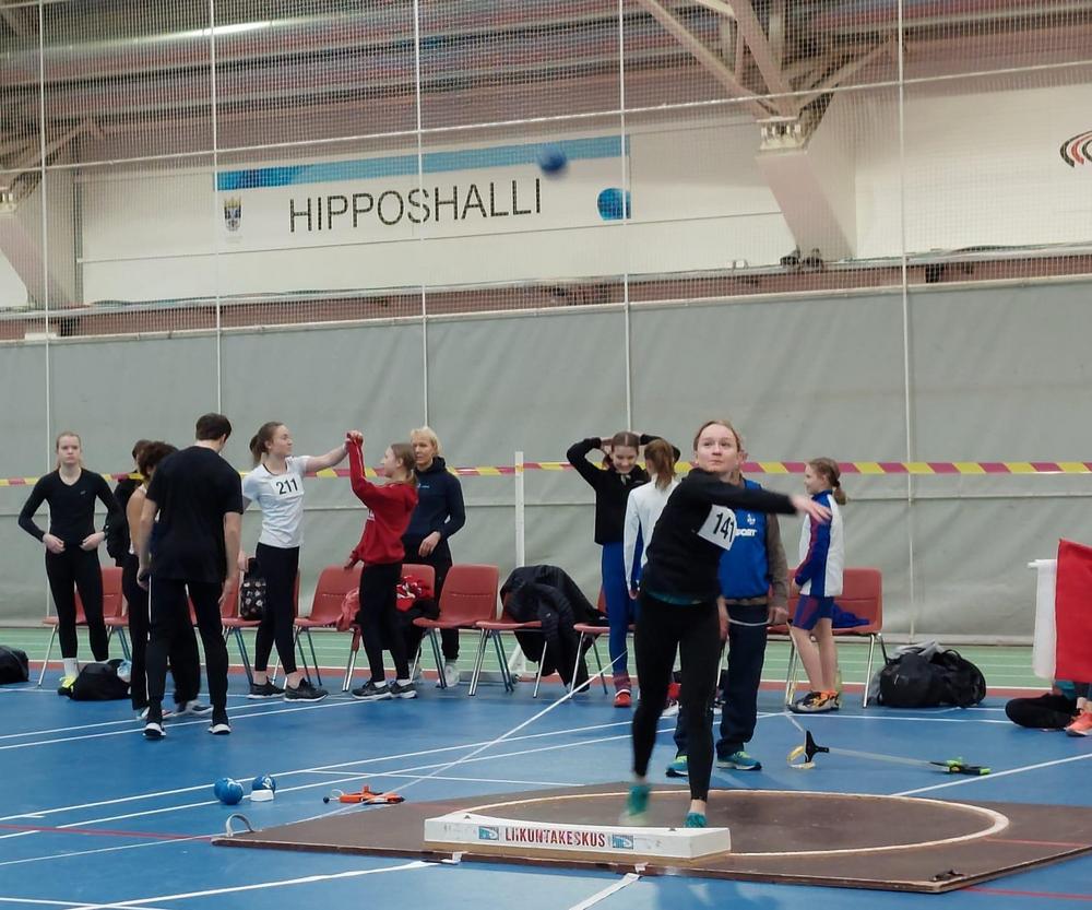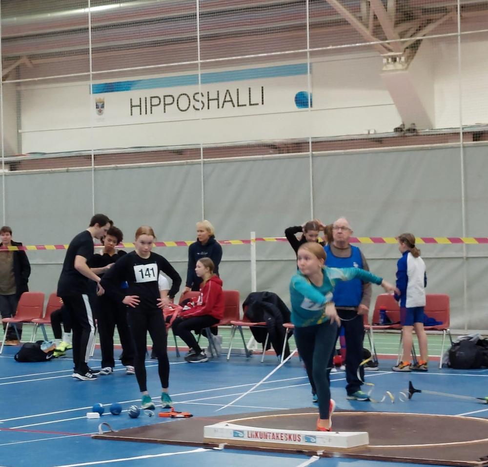 Kaipolan Vireen nuoret urheilijalupaukset Nelli Flyktman ja Iida Tamminen kisasivat Hippoksen juniorihalleissa. Tytöt työnsivät kuulaa valmistelevana harjoituksena tulevan viikonlopun SM-moniotteluun. Flyktman pukkasi T15-sarjassa ennätyksensä ensimmäisellään 9,18, joka riitti kisassa neljänteen sijaan. Tamminen ylsi pronssille T14-sarjassa tuloksenaan 8,57.