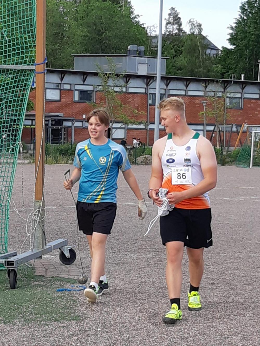 Toinenkin mitali saatiin Jämsään, kun P14 sarjassa kisaava Kaipolan Vireen Konsta Hämelehto moukaroi itsensä hopealle. Konsta heitti moukarissa uuden ennätystuloksensa 51,56 heti ensimmäisellä kierroksella. Toisella kierroksella ennätys parani entisestään tulokseeen 53.96 ja Konsta johti jännittävää kisaa viimeiselle kierrokselle asti. Konsta ei saanut viimeisellä neljällä kierroksella hyväksyttyjä heittoja ja viimeisellä heittokierroksella Alavieskan Virin Jere Murto tempaisi moukarin tulokseen 57,10 ja nousi kilpailun voittoon. Kisassa oli mukana lähes kaikki ikäsarjan parhaat heittäjät, joten kilpailu oli Konstalle hyvää harjoitusta kohti ensimmäisiä SM kisoja elokuun alkuun Imatralle.