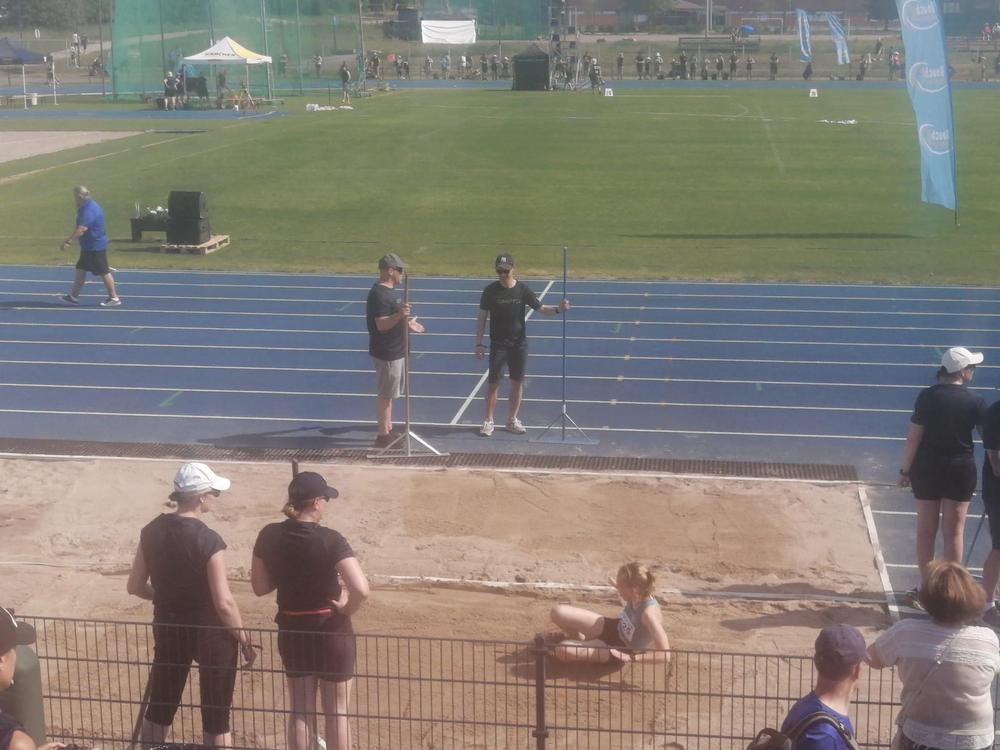 T14 sarjassa kisaava Lydia Aho teki ennätyksensä sekä satasella että pituudessa. Lydiasta oli jännittävää kisata kisassa, jossa oli niin paljon osallistujia, lähes 80 kummassakin sarjassa. Kuumuudesta huolimatta Lydia oli tyytyväinen uusiin ennätyksiinsä, pituudessa uusi ennätys on nyt 4,46 (sijoitus 27.) ja satasen uusi ennätys kirjattiin lukemiin 14,25 (sijoitus 37.).